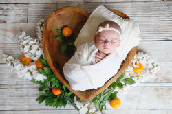 Newborn sessions are best before 2 weeks of age. All props/set up is included! Come to our freshly sanitized studio and enjoy watching your baby be photographed in various set ups of your choice!